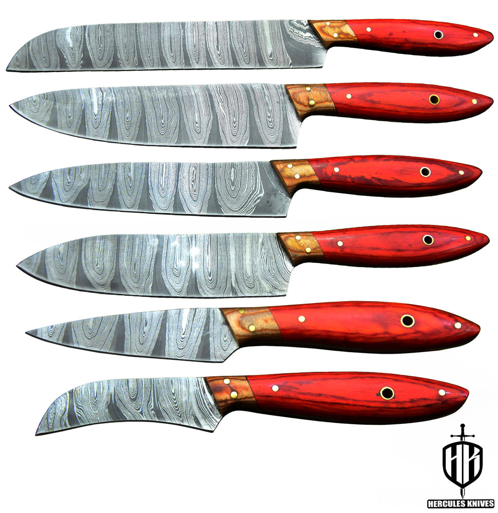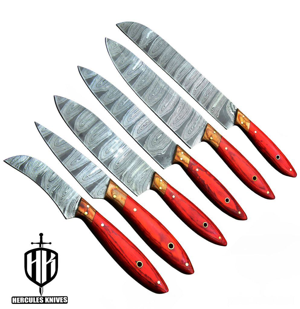 Q840-Q845-Custom Hand Forged Damascus Steel Chef Set Of 6Pcs Knife With Wooden Handle Handmade